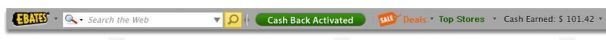 The toolbar also offers one-click links to sales and deals. And, like most, it provides a Web-search option, which you can use or not. If you like to know the running tally of how much cash you've earned to date, it can display that number -- though you can also hide that info if you wish (something to consider if you share your PC).