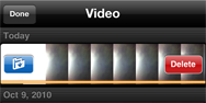 The browser contains all your accessible video, photos, and audio. Any video you've taken on your device, stored in the Photos app, or imported using Apple's Camera Connection Kit should be easily accessible here, labeled by date and length. Unfortunately, there seems to be no easy way to import video from third-party apps--you'll need to find some way to get it into the Camera Roll first. A note on importing video through the Camera Connection Kit: While bringing in iPhone or iPod touch video is easy enough, the clip format used by other cameras may not be compatible with iMovie.