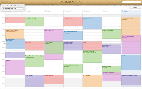 iCal The new version of iCal has gotten a makeover: The top of the iCal window has been given a leather texture with hints of torn-off pages beneath (the same design approach used on the iOS Calendar app), making it look a bit more like a paper calendar. It's an unnecessary gimmick, sure-who uses tear-off paper desk calendars anymore, anyway?-but it's mostly harmless. I'm not sure why Apple has chosen to make a few of its apps mock their real-world counterparts, and the app would probably look better with a standard gray toolbar. Sometimes Apple's ways are mysterious. (The functional part of the iCal interface has also been revamped, with the source list on the left side replaced with a popover in order to create more room for actual calendar data.)