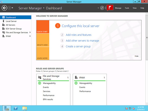The Server Manager app continues to be enhanced as a one-stop shop for managing administrative tasks on Windows Server 8. Out of the box, it's simple to see what tasks need to be done to get a server into production.
