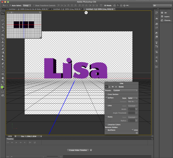 Adobe has scrapped CS5's large Reposé dialog box and subsumed the 3D technology into the interface. Now, a Properties panel and widgets enable 3D extrusion and the manipulation of 3D objects in real time. The program also supports draggable shadows and ground-plane reflections. The Picture In Picture window shows an alternate view of the 3D object. With it, you can switch camera views, pan, zoom, and swap this view with the main document window.