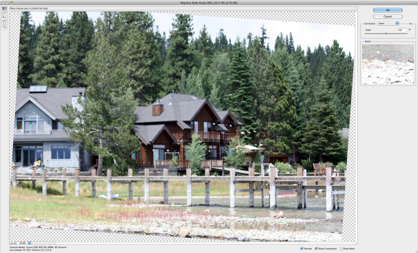 Photoshop CS6 offers a new way to achieve lens corrections. The Adaptive Wide Angle adjustment filter lets you quickly straighten objects that appear curved in photos shot with wide-angle or fish-eye lenses, or panoramas created with Photomerge. Using Adobe's CS5 lens correction system, which fixes lens-based geometric distortion, chromatic aberration, and vignetting, the new filter reads lens metadata and lets you click and drag new on-canvas tools to straighten and align objects vertically or horizontally in the scene.
