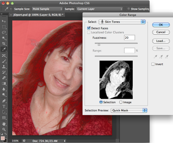 Photoshop CS6 introduces more controls for preserving skin tones in images where you either want to change or adjust the skin color, or preserve skin tones as you change other parts of the picture. The Color Range dialog box, under the Select menu, offers both a Skin Tones option and a Detect Faces checkbox. Used in concert, they can help you create an accurate mask.