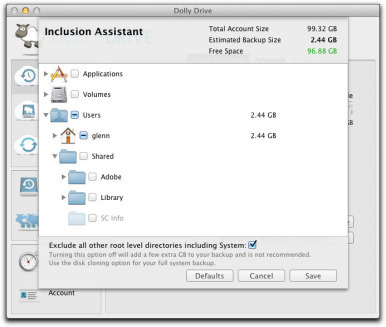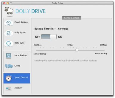 However, it competes with hosted Internet backup options such as CrashPlan ( Macworld rated 4.5 out of 5 mice ) and Jungle Disk. These services provide their own backup software interface and back-end handling, rather than relying on OS X's Time Machine, and often have substantially more granular settings for which files are backed up and at what frequency. Backup-only services can be far cheaper. CrashPlan's single-computer unlimited backup price is $5 per month, while Dolly Drive includes just 50GB for a single-user account intended for a single computer. (See Which online backup service is right for you? for more info about online backup services.)