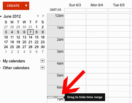 If you generally don't have anything scheduled at 3 a.m. (except for sleep, hopefully), this Google Calendar Lab could be useful. The "Hide morning and night" Lab lets you customize your calendar so you see only events within the time range of your choice, for example between 8 a.m. and 8 p.m. instead of the 24-hour view.