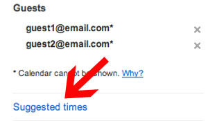 After you add attendees to a meeting, a "Suggested times" link will appear under the guests list.