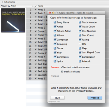 Q: I want to re-import into iTunes a lot of my CDs that I previously ripped at between 128 kbps and 320 kbps; Id like to rip them in Apple Lossless format. But these tracks all have custom album art, lyrics, and genres and additional tags in the Comments field. Is there a way to import the new audio files and keep all the non-audio metadata?