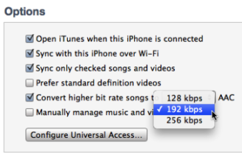In a recent Mac OS X Hints blog post, I discussed using iTunes auto-convert feature when syncing to iOS devices. So you can fill your iTunes library with lossless filesto listen to through your computer connected to external speakers or on your stereo system via your Apple TV, for exampleand let iTunes convert them on the fly, when you sync, so you can store more music or your iPod or iPhone.