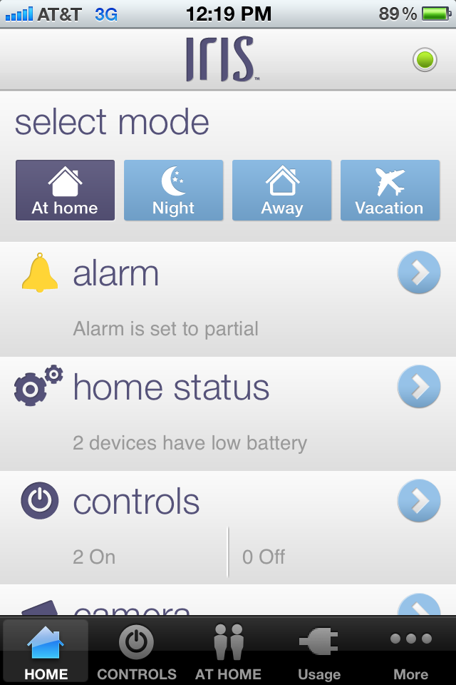 Iris can inform you of the status of its door and window sensors (open or closed); and unlike some Z-Wave networks I've tested, it can also report the status of lights (on or off). If you inform Iris of your electric utility company's billing rate per kilowatt hour, the service will provide an estimate of how much you're spending on electricity to power that device. Lowes also offers an add-on meter reader ($150) to track electricity consumption for your entire house.