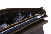 The Briefcases interior (measuring 14.3 inches wide, 11 inches deep, and 2.3 across) reflects this sleek, streamlined design. Theres a lightly padded sleeve for a computer, a flat back pocket for papers or an iPad, and a business card holder, pen compartments, and cable loops for small-item storage. As its name suggests, the Briefcase is intended for the 13-inch MacBook Air, but I my 13-inch MacBook fit snugly inside, as well.