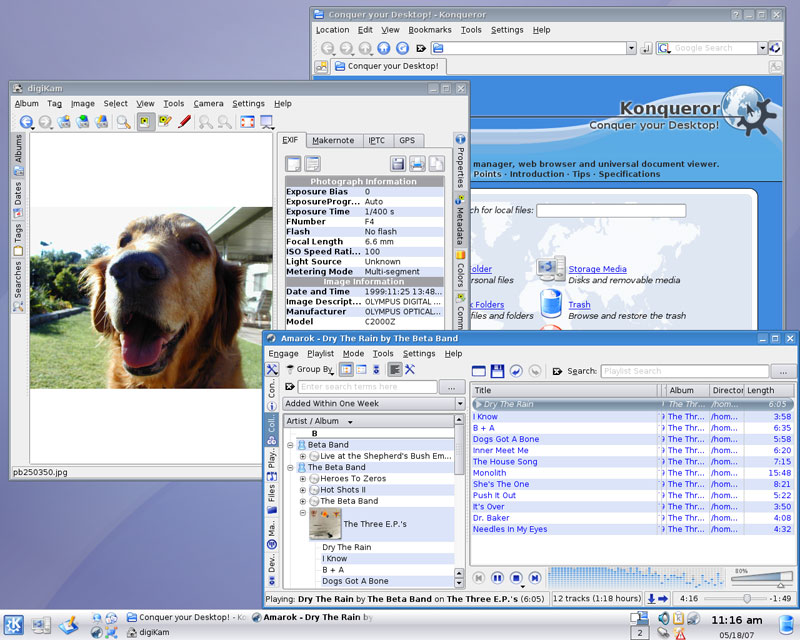 The kubuntu-desktop package is a so-called meta-package; when you install it, dozens of other packages that make up the entire KDE infrastructure come along for the ride. On my bare-bones Feisty installation, Aptitude needed to fetch 198MB of packages, which took up nearly 600MB on my drive when unpacked and installed. Moral: Don't begin this journey without bandwidth and disk space to spare!